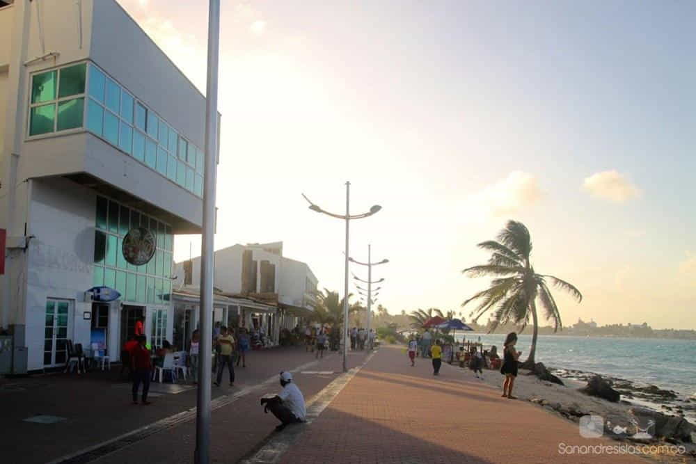 Desde aquí se puede observar muy bien Johnny Cay; es una zona muy agradable para caminar, disfrutar de bares, restaurantes y comercio, sin perderse el hermoso paisaje del mar sanandresano. El paseo se encuentra muy bien iluminado así que permite disfrutar su recorrido en la noche también.
